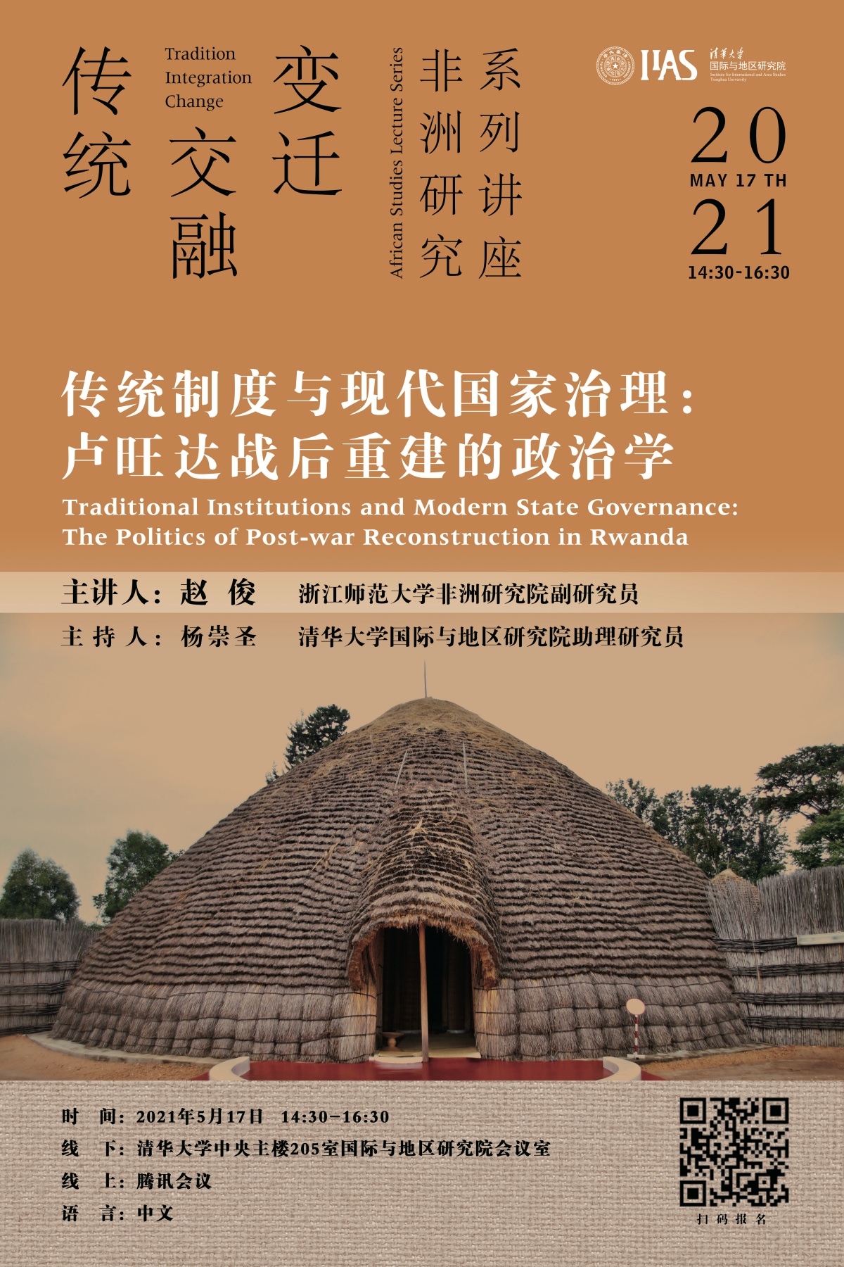2021年5月17日下午,非洲研究系列讲座:传统、交融与变迁第四讲在中央主楼205会议室召开,主题为“传统制度与现代国家治理:卢旺达战后重建的政治学”。本次讲座由浙江师范大学非洲High漫画副研究员赵俊主讲,地区High漫画博士生及研究员参与了线下现场讲座,部分校外师生参加了线上讲座。