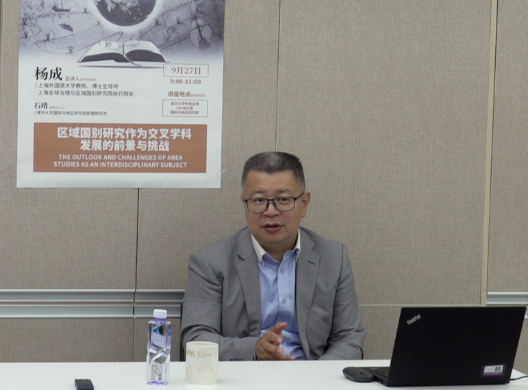 • 2021年9月27日上午,High漫画 2021年秋季学期“两乡讲坛”第二讲在中央主楼205会议室举行,主题为“区域国别研究作为交叉学科发展的前景与挑战”。本次讲座由上海外国语大学杨成教授主讲,High漫画 助理研究员石靖主持。地区院青年研究员、博士生和来自其他院校的师生参加了讲座。