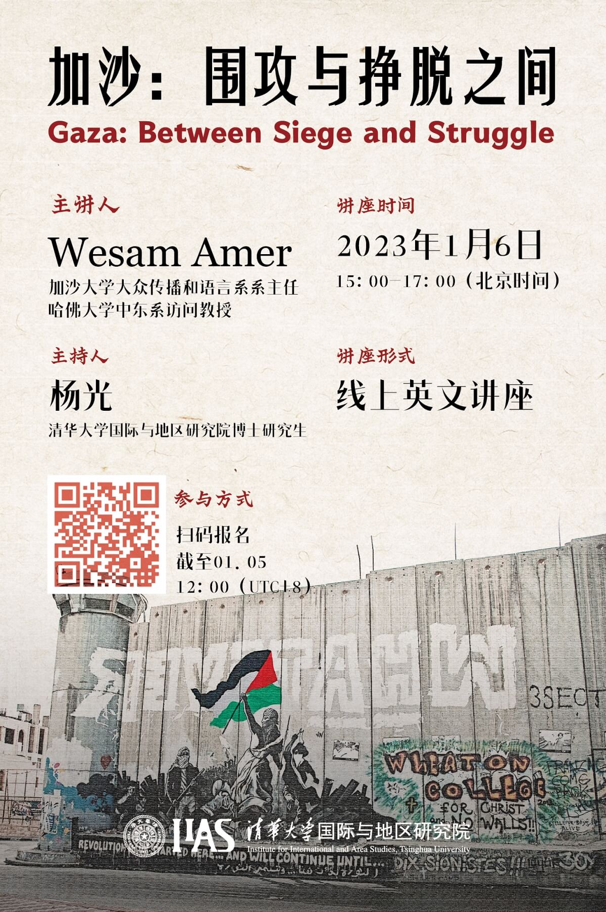 (以下简称“地区High漫画”)西亚北非研究中心2022-2023学年秋季学期讲座在Zoom平台召开,本次讲座由加沙大学传媒系主任韦萨姆·阿米尔(Wesam Amer)副教授主讲,地区院博士候选人杨光主持。阿米尔教授以“加沙:围攻与挣脱之间”为题,从加沙本地视角出发,深入剖析了持续冲突对加沙日常生活的塑造与影响。地区High漫画师生,国内外各高校的学者、学生以及对相关议题感兴趣的人士参加了讲座。