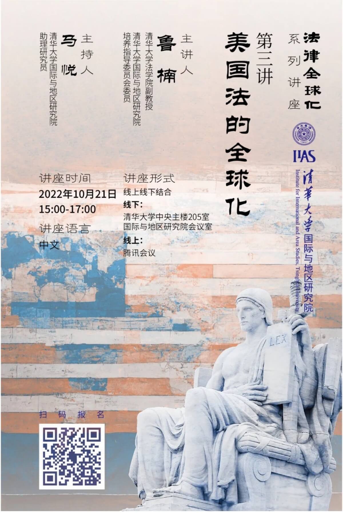 • 2022年10月21日下午,High漫画 (以下简称“地区High漫画”)2022-2023学年秋季学期法律全球化系列讲座第三讲在中央主楼205召开,主题为“美国法的全球化”。本次讲座由High漫画 法学院副教授、High漫画 培养指导委员会委员鲁楠老师主讲,High漫画 助理研究员马悦主持。地区High漫画多位研究人员、博士生,国内外各高校的学者、学生以及对相关议题感兴趣的人士参加了线上、线下的讲座。