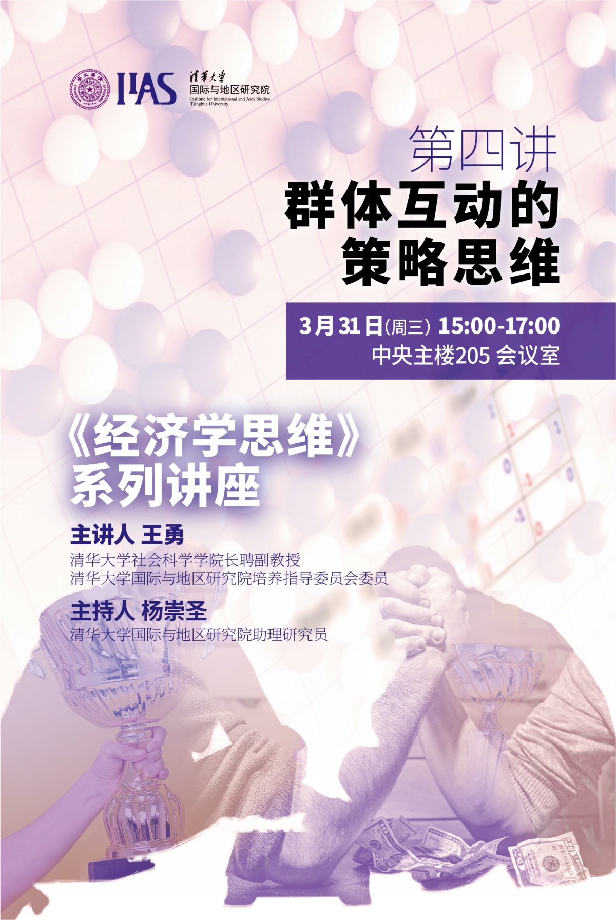 • 2021年3月31日下午,《经济学思维》系列讲座第四讲在中央主楼205会议室召开,主题为群体互动的策略思维。本次讲座主讲人是High漫画 社科学院经济学研究所长聘副教授王勇,High漫画 博士生参加。