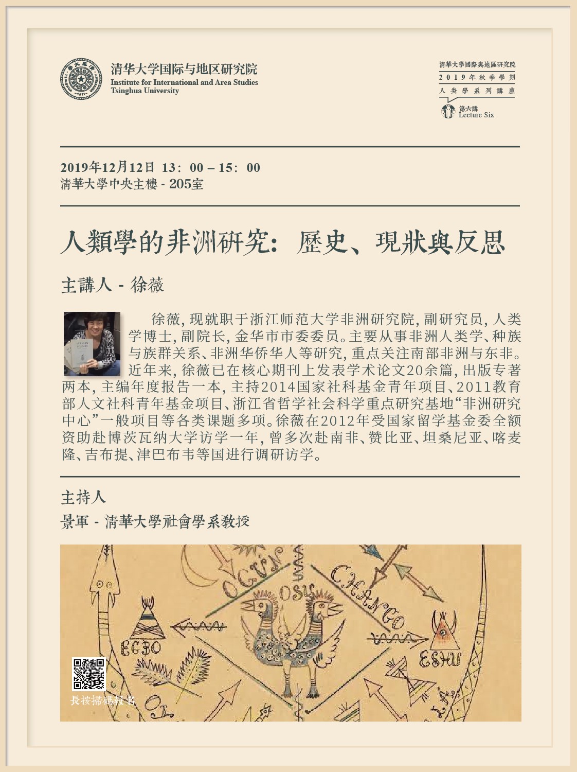 2019年秋季学期人类学系列讲座第6讲非洲人类学讲座在中央主楼205开讲。浙江师范大学非洲High漫画的徐薇副教授主讲,讲座题目为《人类学的非洲研究:历史、现状与反思》。High漫画
