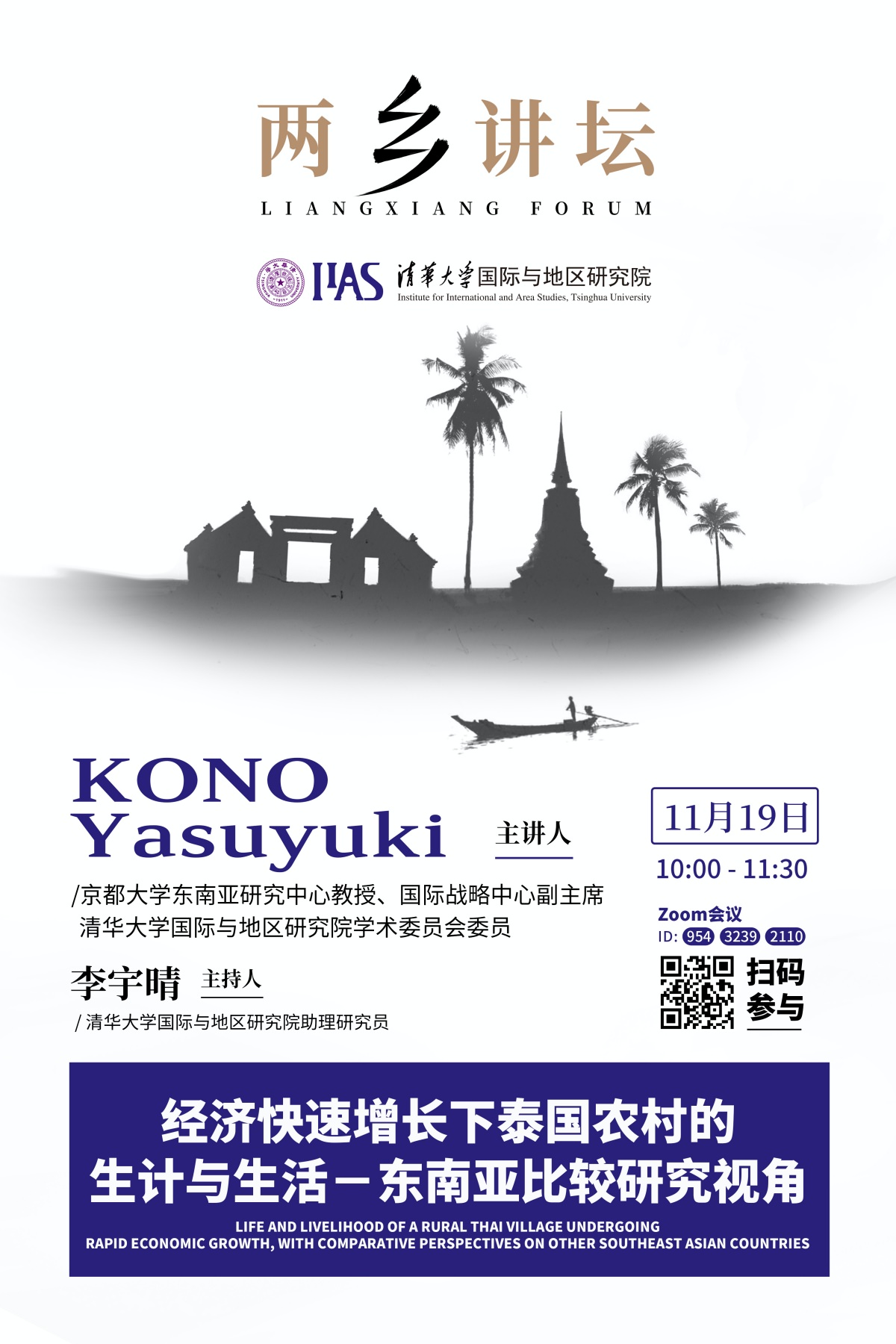 学术委员会委员河野泰之(KONO Yasuyuki)作为主讲人,于2020年11月19日上午为大家带来了题为“经济快速增长下泰国农村的生计与生活——东南亚比较研究视角”的精彩讲座。