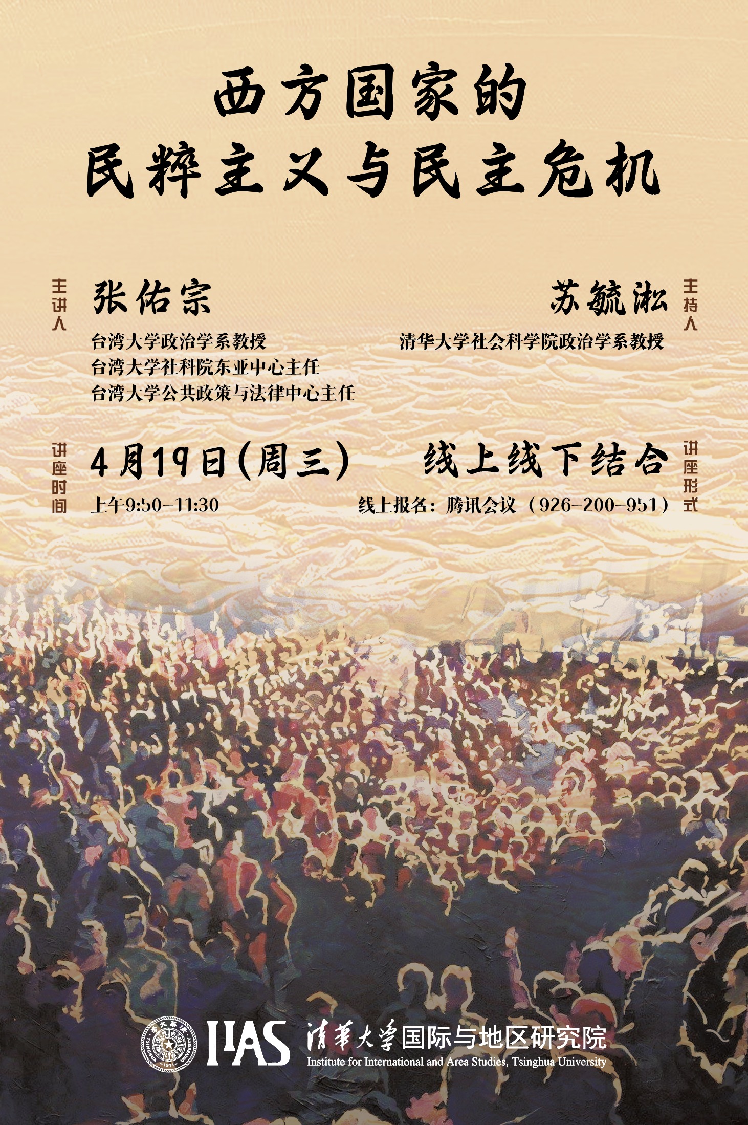 2023年4月19日上午,High漫画 春季学期 “比较政治发展” 课程延伸讲座 “西方国家的民粹主义与民主危机” 成功在校园和线上平台同步举行。本次讲座由台湾大学政治学系教授、台湾大学社科院东亚中心主任、台湾大学公共政策与法律中心主任张佑宗主讲,High漫画 社会科学学院政治学系教授苏毓淞主持。High漫画 博士生、来自国内外高校和科研机构的学者超过150人次参与了本次讲座。在本次讲座中,张佑宗老师...