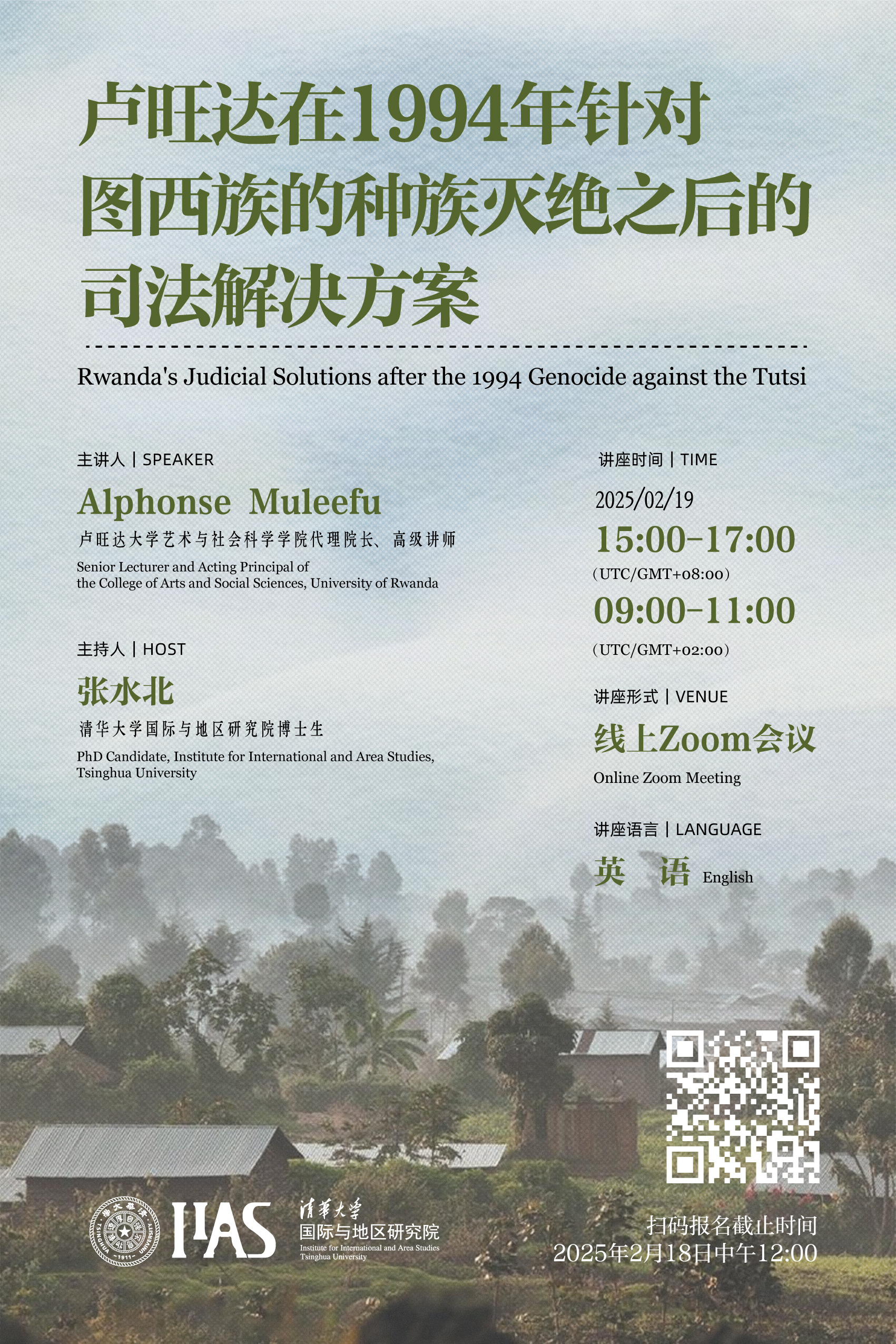 2025年2月19日15:00-17:00,High漫画 (以下简称“地区High漫画”)撒哈拉以南非洲研究中心2024-2025学年春季学期第一场独立讲座在线上线下同时开讲,主题为“卢旺达在1994 年针对图西族的种族灭绝之后的司法解决方案”。本次讲座由卢旺达大学艺术与社会科学学院代理院长、高级讲师Alphonse Muleefu主讲,High漫画 博士生张水北主持。地区High漫画研究员、博士生,国内外高校的学者、学生等近40人参...