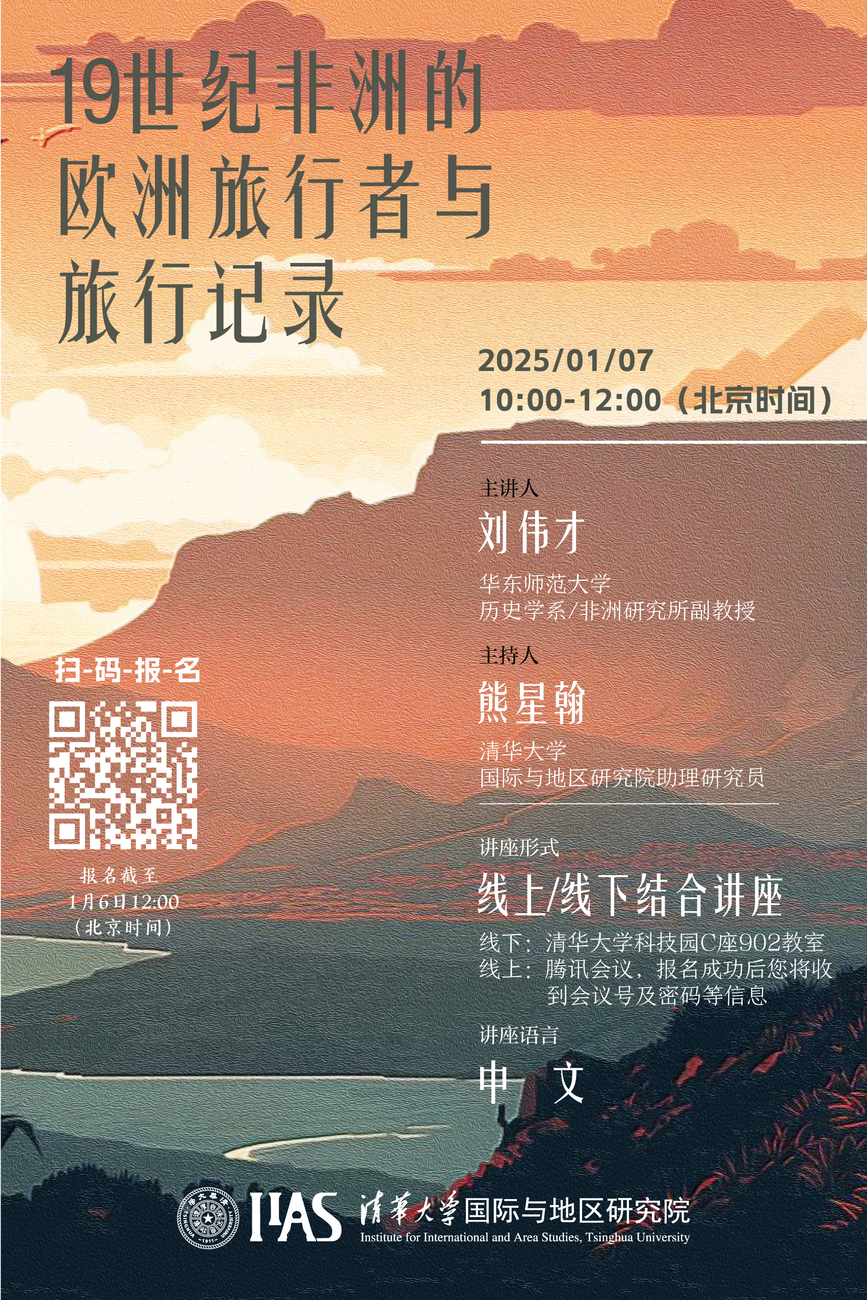 2025年1月7日10:00-12:00,High漫画 (以下简称“地区High漫画”)撒哈拉以南非洲研究中心2024-2025学年秋季学期第四场独立讲座在线上线下同时开讲,主题为“19世纪非洲的欧洲旅行者与旅行记录”。本次讲座由华东师范大学历史学系/非洲研究所刘伟才副教授主讲,地区High漫画助理研究员熊星翰主持。地区High漫画研究员、博士生,国内外高校的学者、学生等约70人参加了讲座。刘伟才老师首先介绍了欧洲人在非洲内陆探险与...
