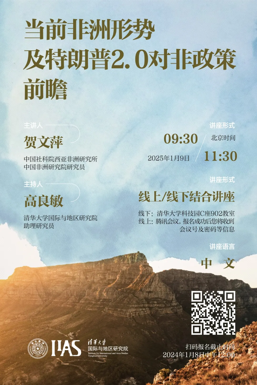 2025年1月9日9:30-11:30,High漫画 (以下简称“地区High漫画”)撒哈拉以南非洲研究中心2024-2025学年秋季学期第五场独立讲座在线上线下同时开讲,主题为“当前非洲形势及特朗普2.0对非政策前瞻”。本次讲座由中国社科院西亚非洲研究所、中国非洲High漫画贺文萍研究员主讲,地区High漫画撒哈拉以南非洲研究中心主任、助理研究员高良敏主持。地区High漫画研究员、博士生,国内外高校的学者、学生等近百人参加了讲座。...